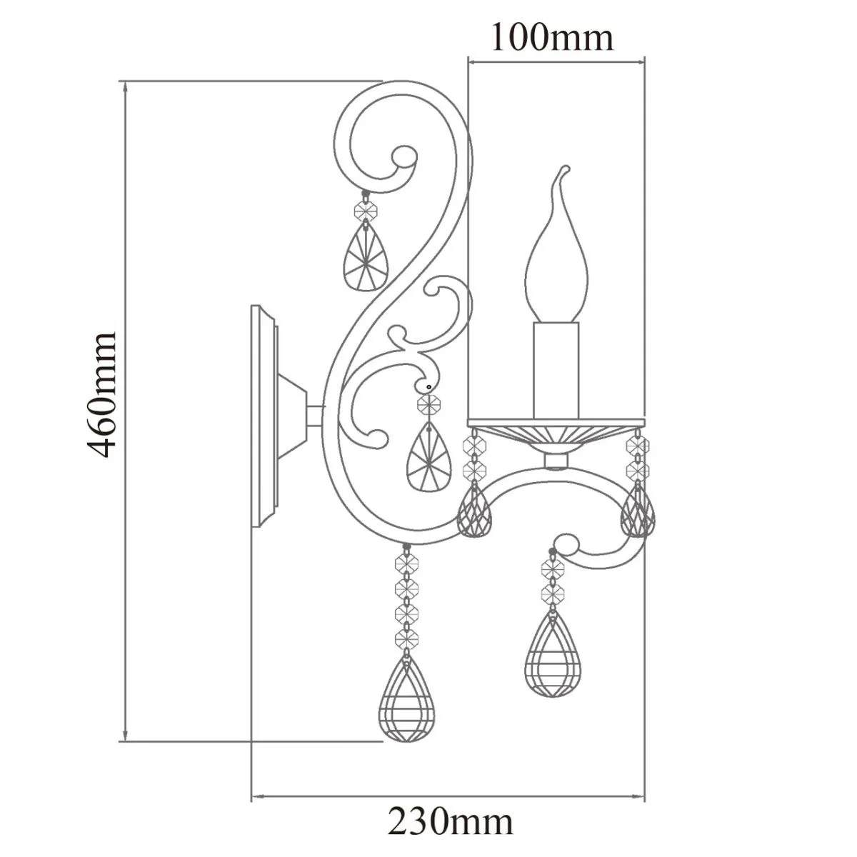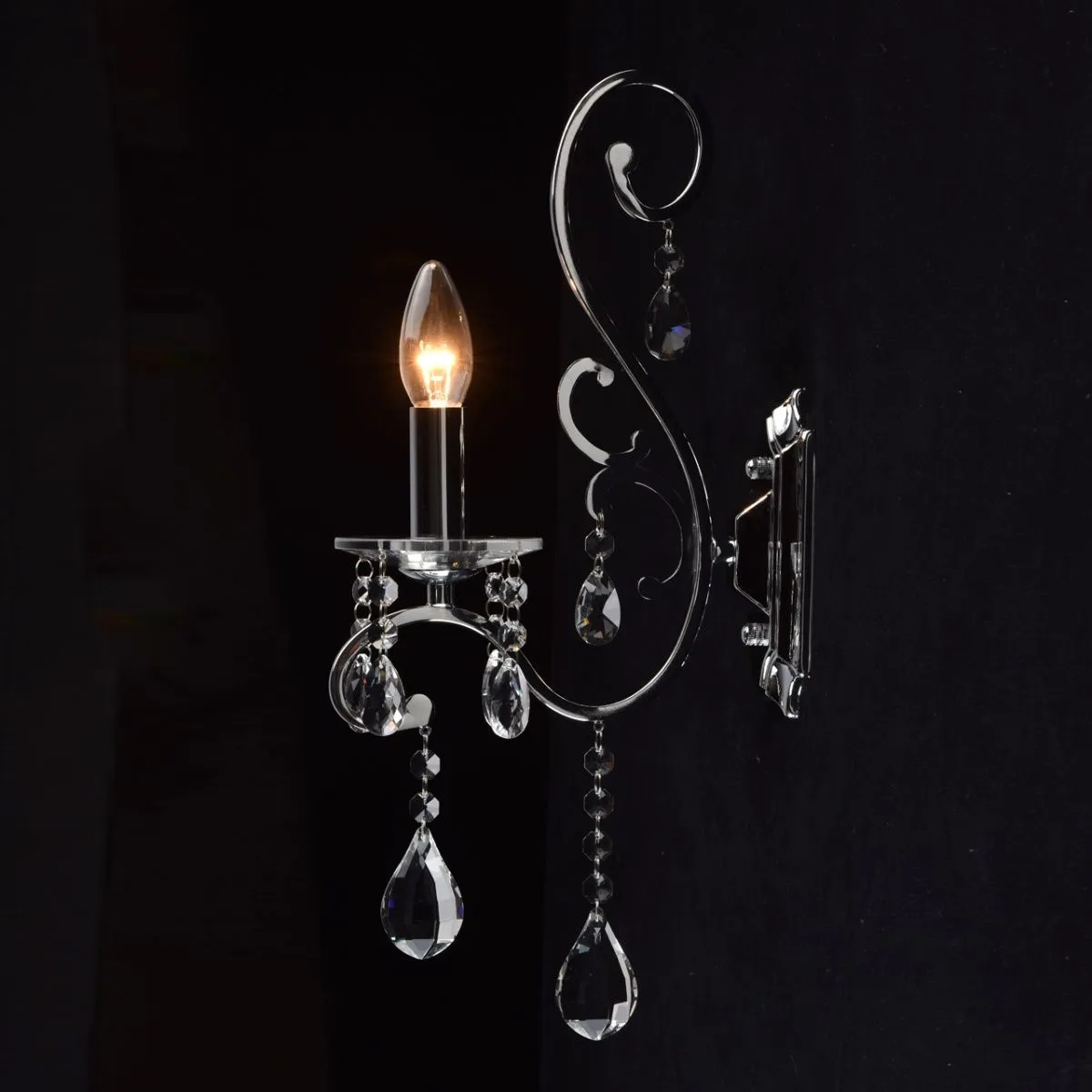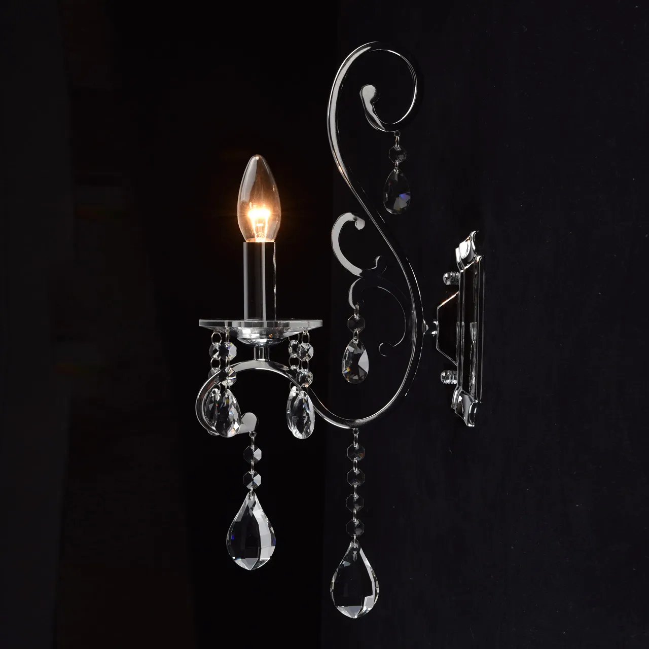 Металлическое основание цвета хрома, декоративные подвески из хрусталя