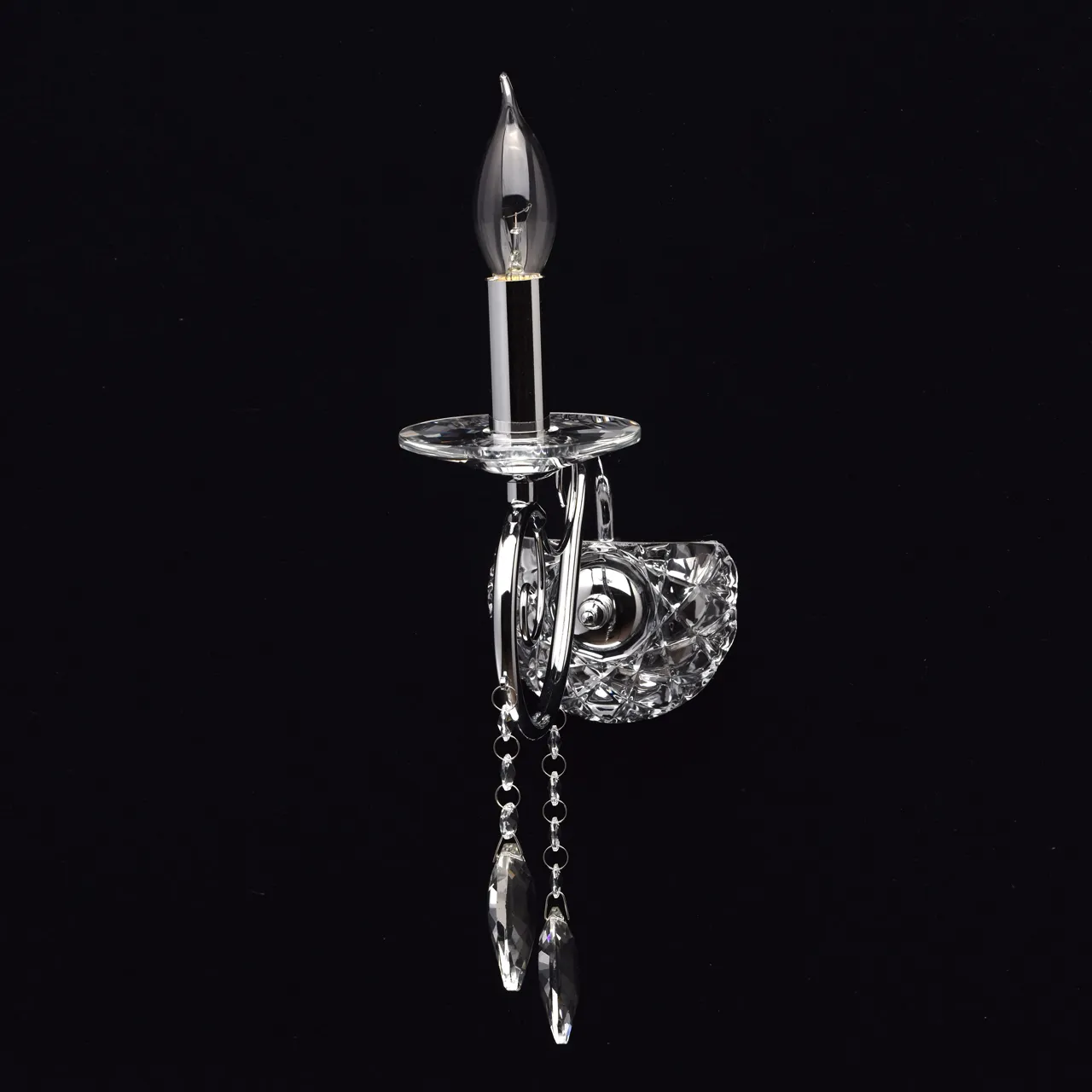 Металлическое основание цвета хрома. Декор - хрусталь, высокого качества.