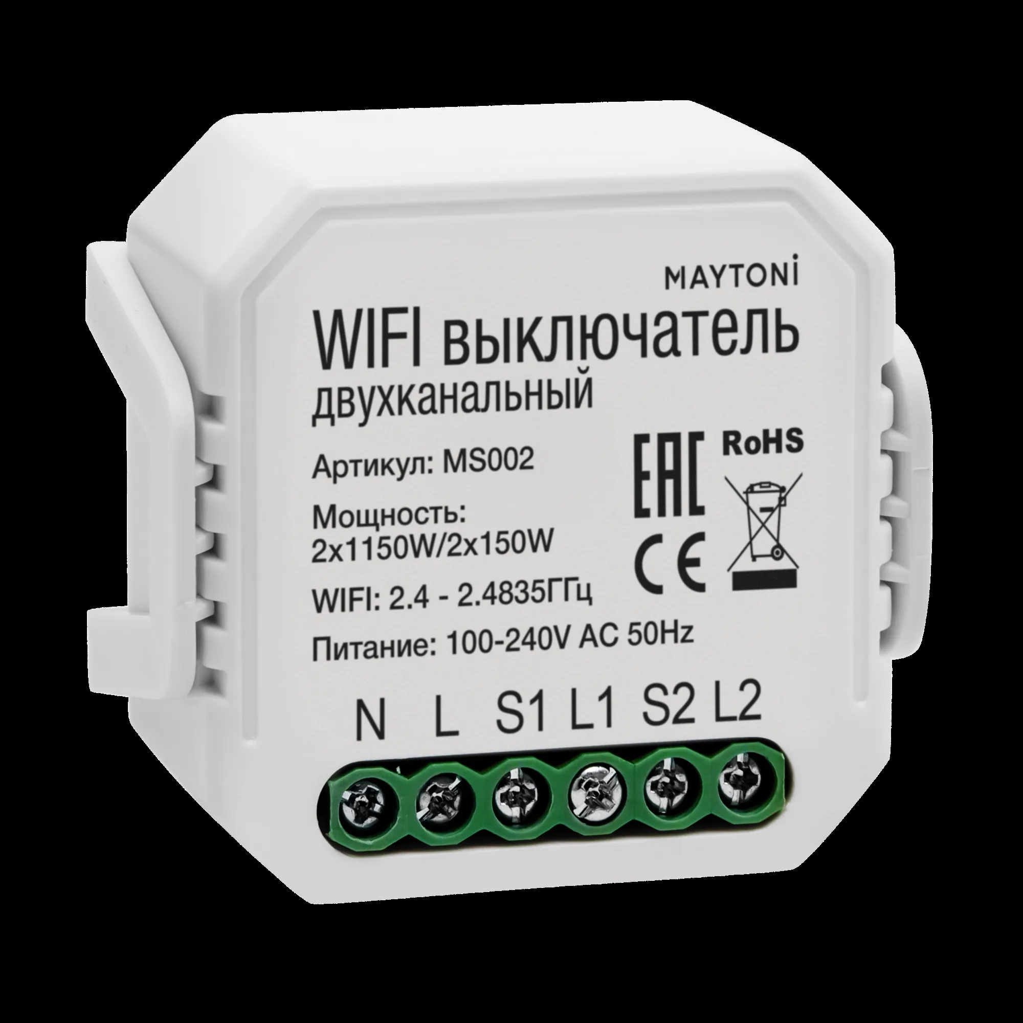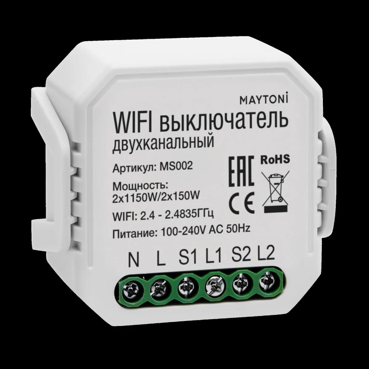 Wi-Fi выключатель двухканальный Maytoni Technical Smart home MS002 купить в Дубне по лучшей цене