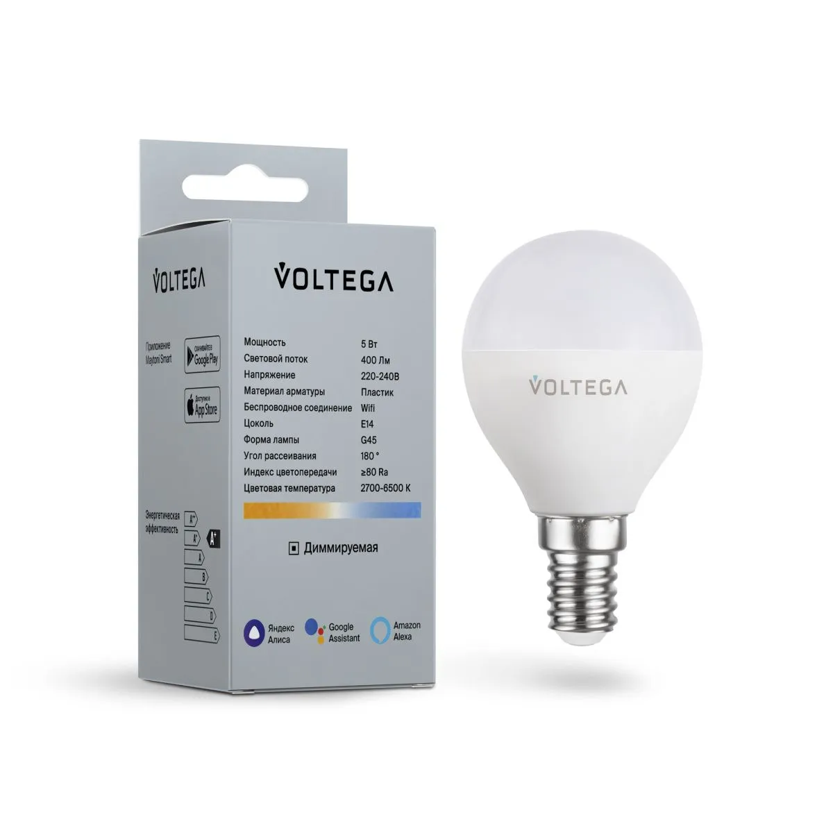 Лампа светодиодная диммируемая Voltega E14 5W 2700К матовая VG-G45E14cct-WIFI-5W 2428 купить в Дубне по лучшей цене