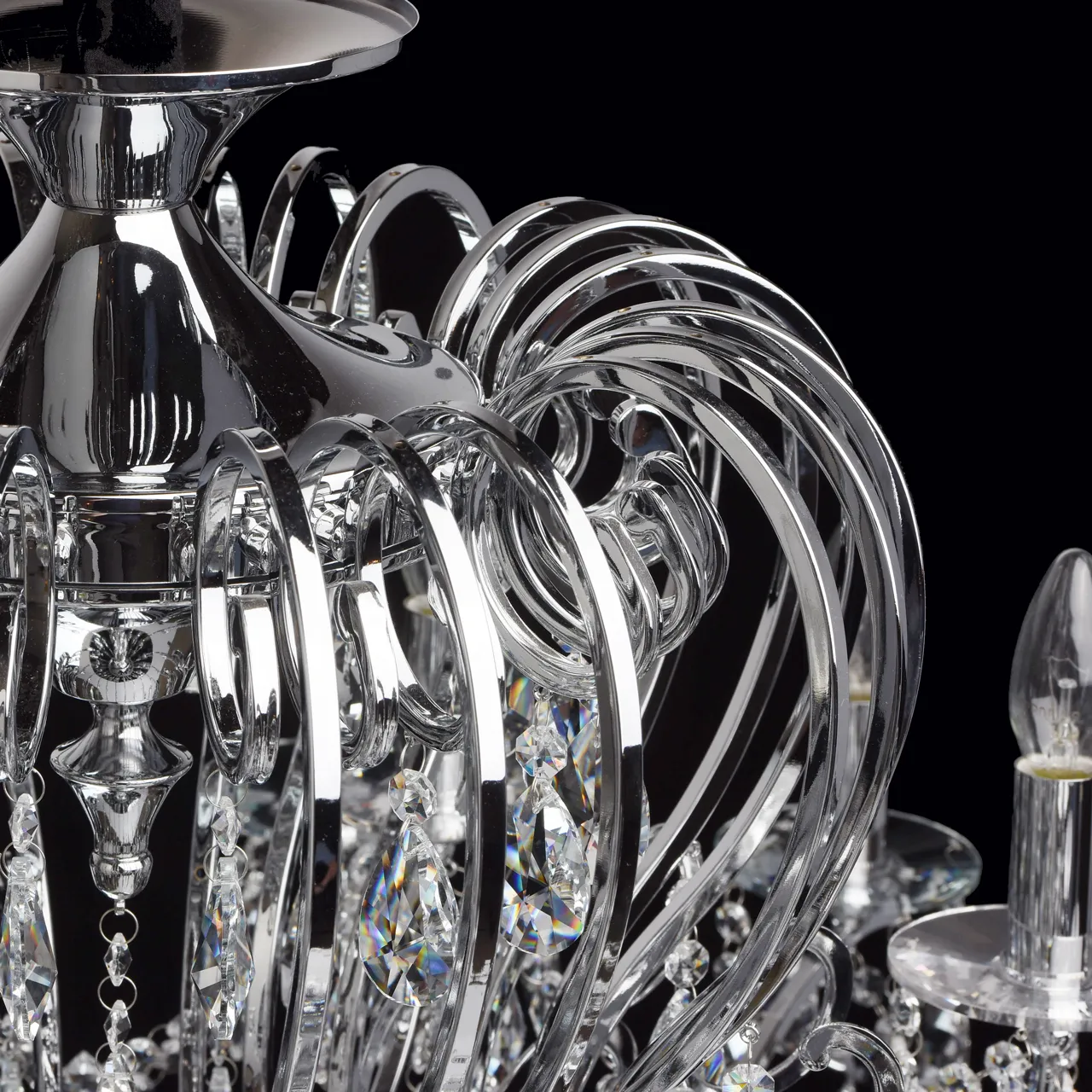 Металлическое основание цвета хрома, декоративные подвески из хрусталя